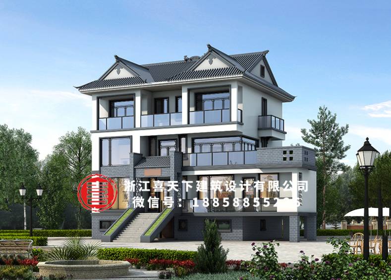 湖南衡阳肖家新中式风格别墅自建房设计图纸喜天下建筑设计